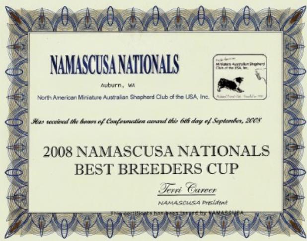 | 2008MASCA & NAMASCUSA NATIONALS GENERATIONS Multi Champion Boldheart Lacy Blue Jeans Multi Champion Boldheart Kingdoms Treasures Multi Champion Teacup Treasures Mercedes |